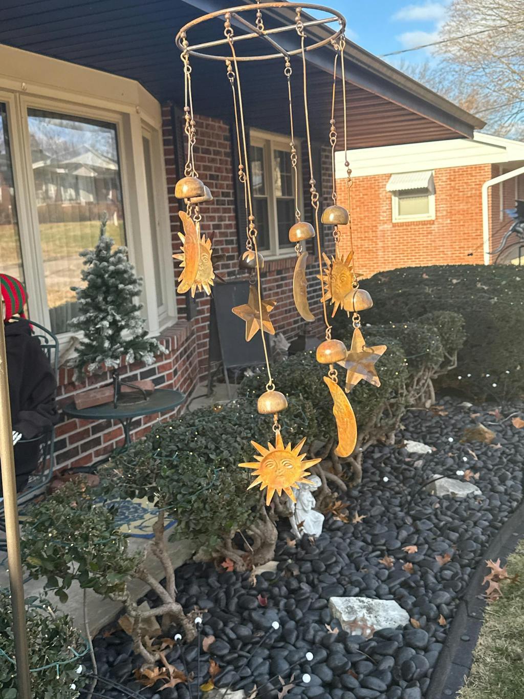Got tired watching, even after caring for them, plants dying by the pool and where once hung a plant I now have the very lovely copper colored sun, moon and stars....