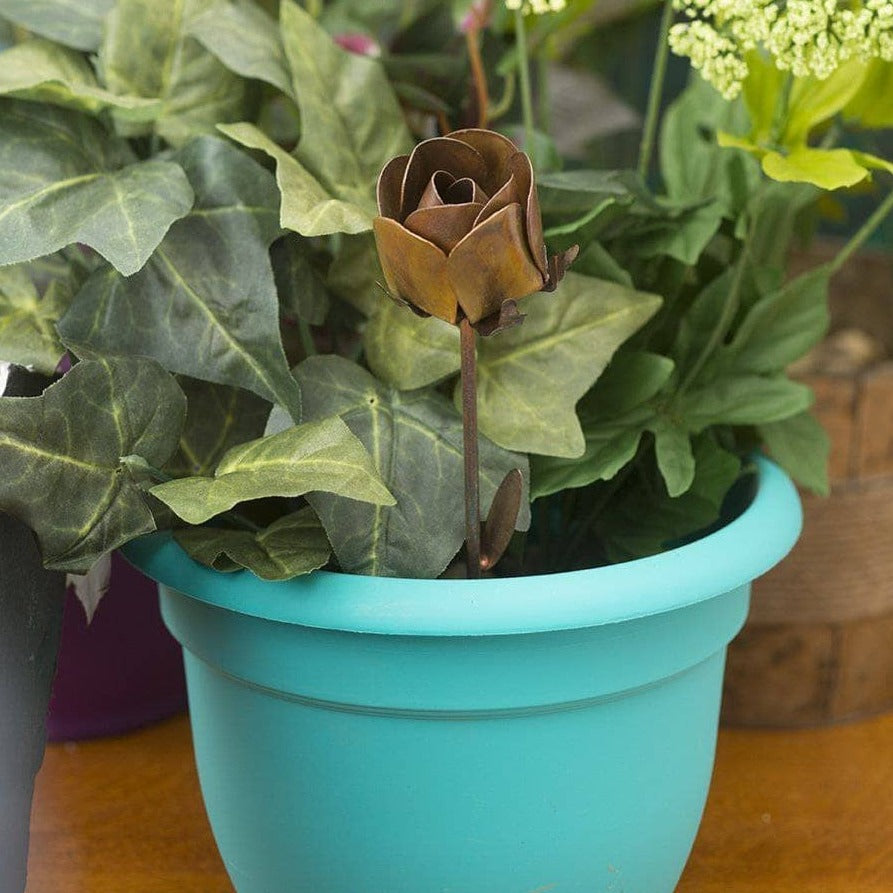 Bring handcrafted beauty and a natural, understated sense of romance to any potted plant or flower box with this flamed rose plant prick. Perfectly finished in an unassuming-but-lovely flamed metal, this decorative rose adds character without becoming a distraction. No matter where you decide to stake it, this charming accessory will add ambiance to your outdoor space for years to come.