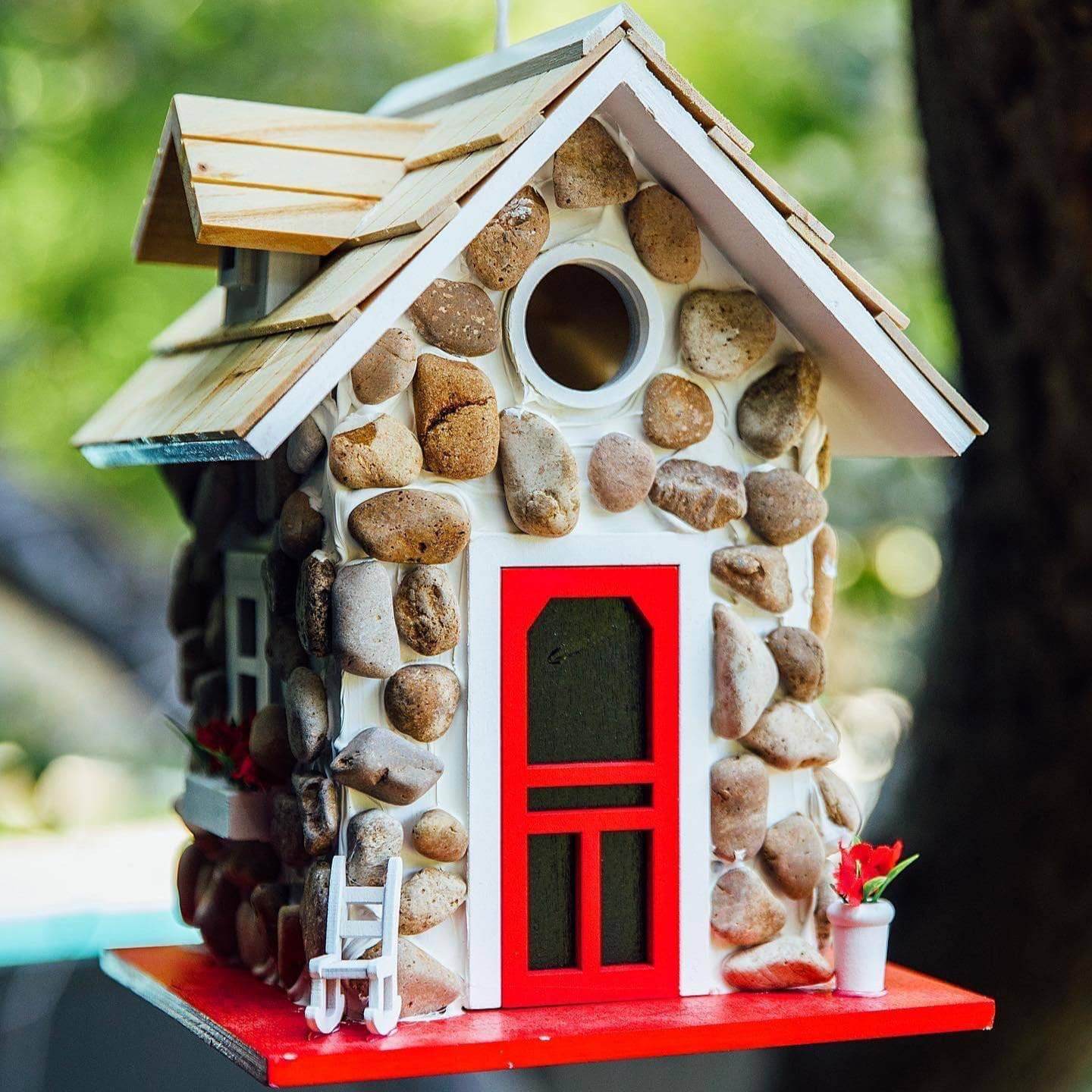 This is a beautiful bird house. It’s very well made. I absolutely love it❤️ I plan to buy more bird houses from this company.